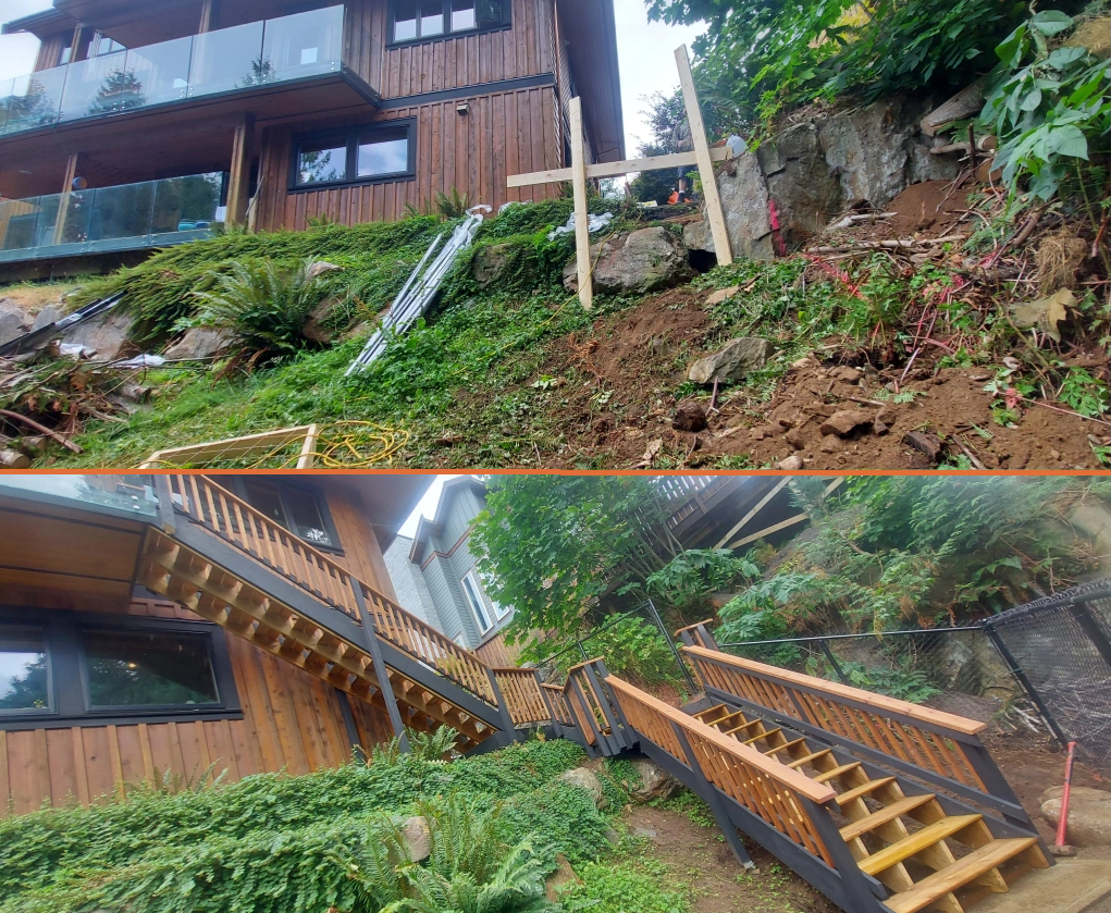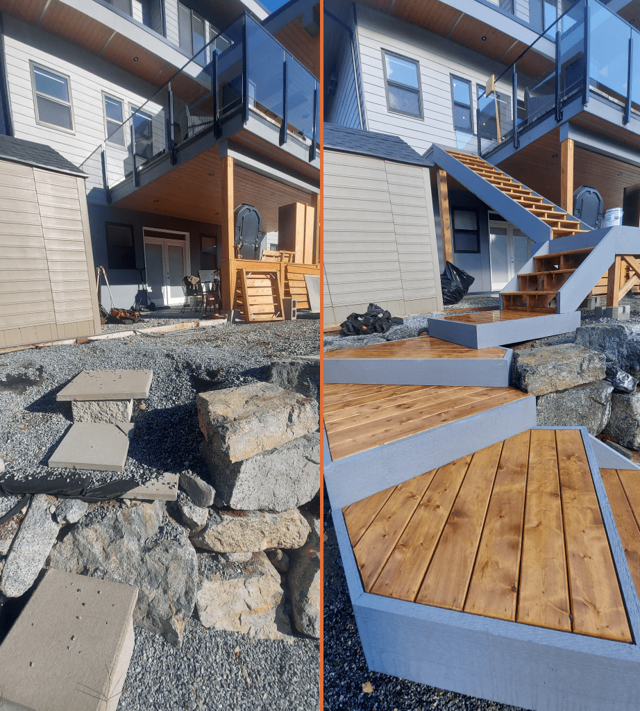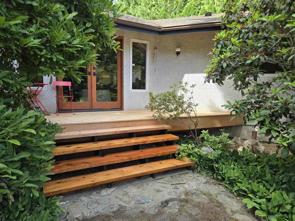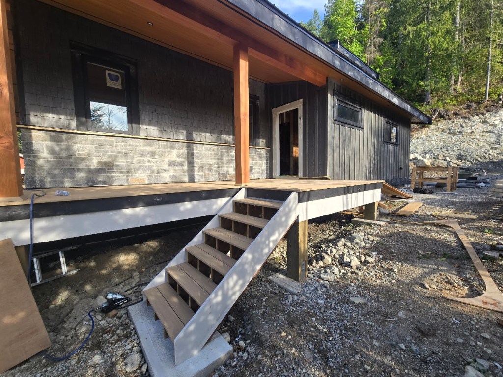 Gallery Deck we built. Finished with timbertech boards and a view of our siding and soffit in the back. Another view showcasing our deck and siding craftsmanship. Snaplock metal roof installed by our team. Cedar deck we built from scratch.